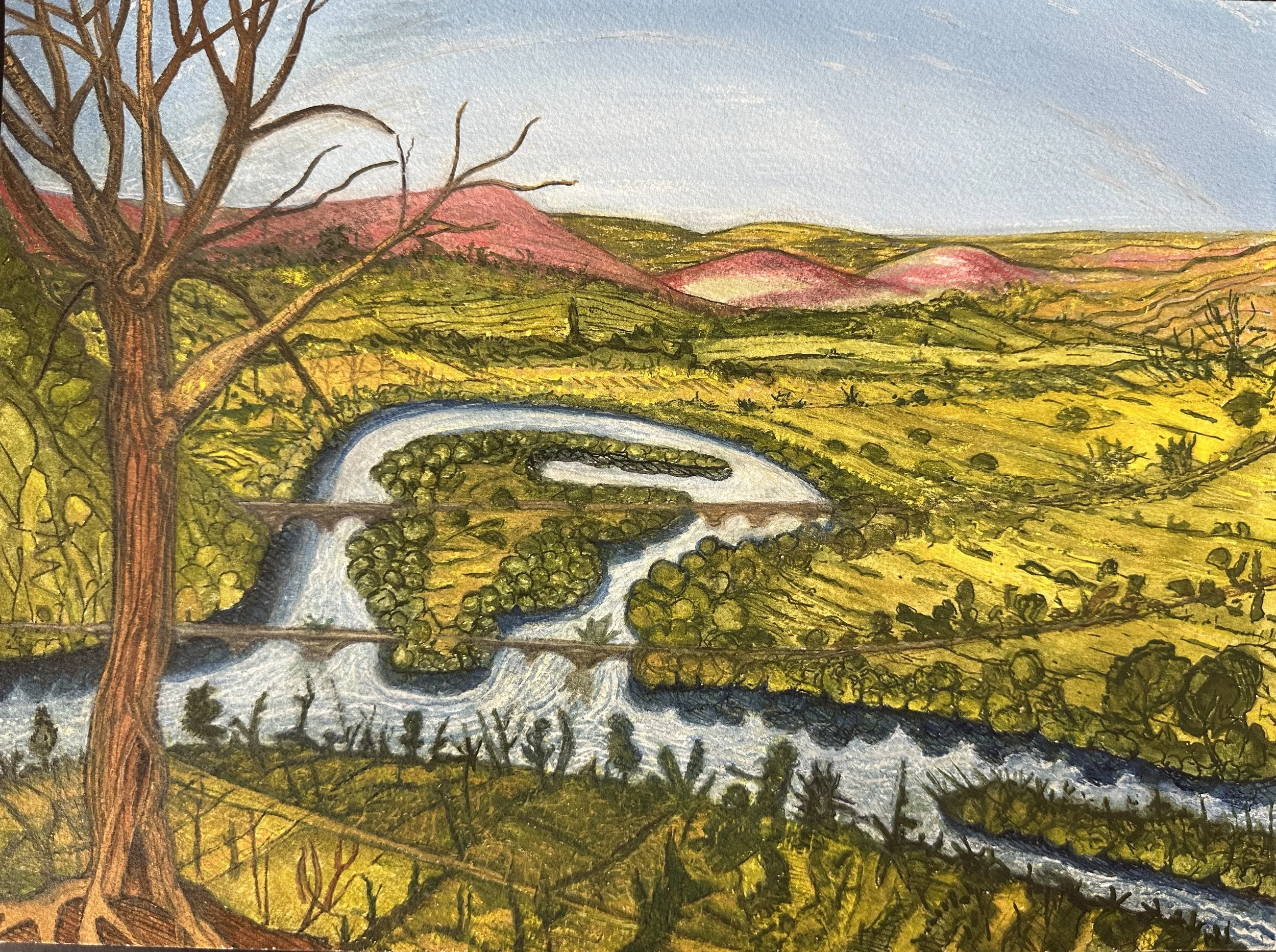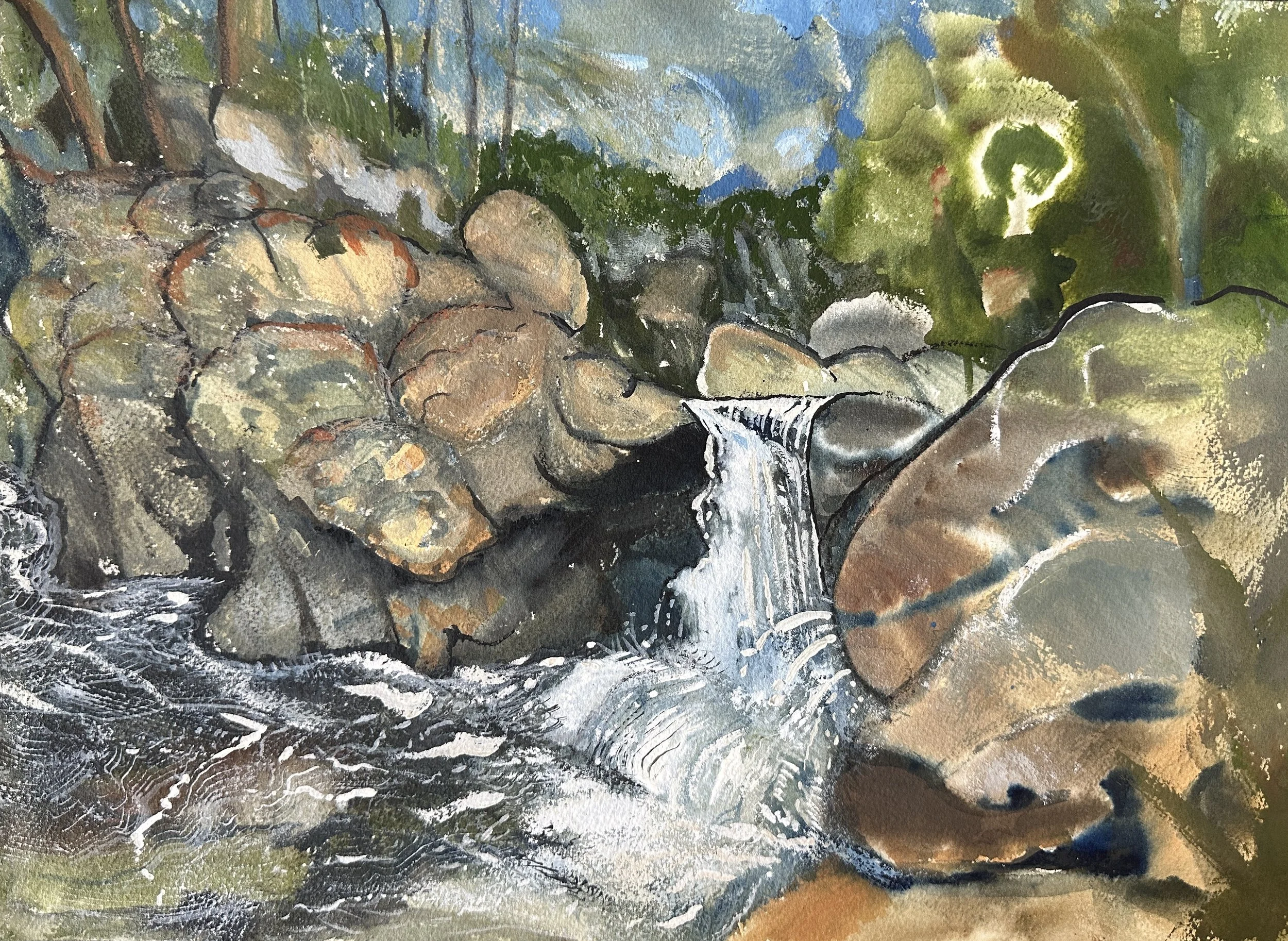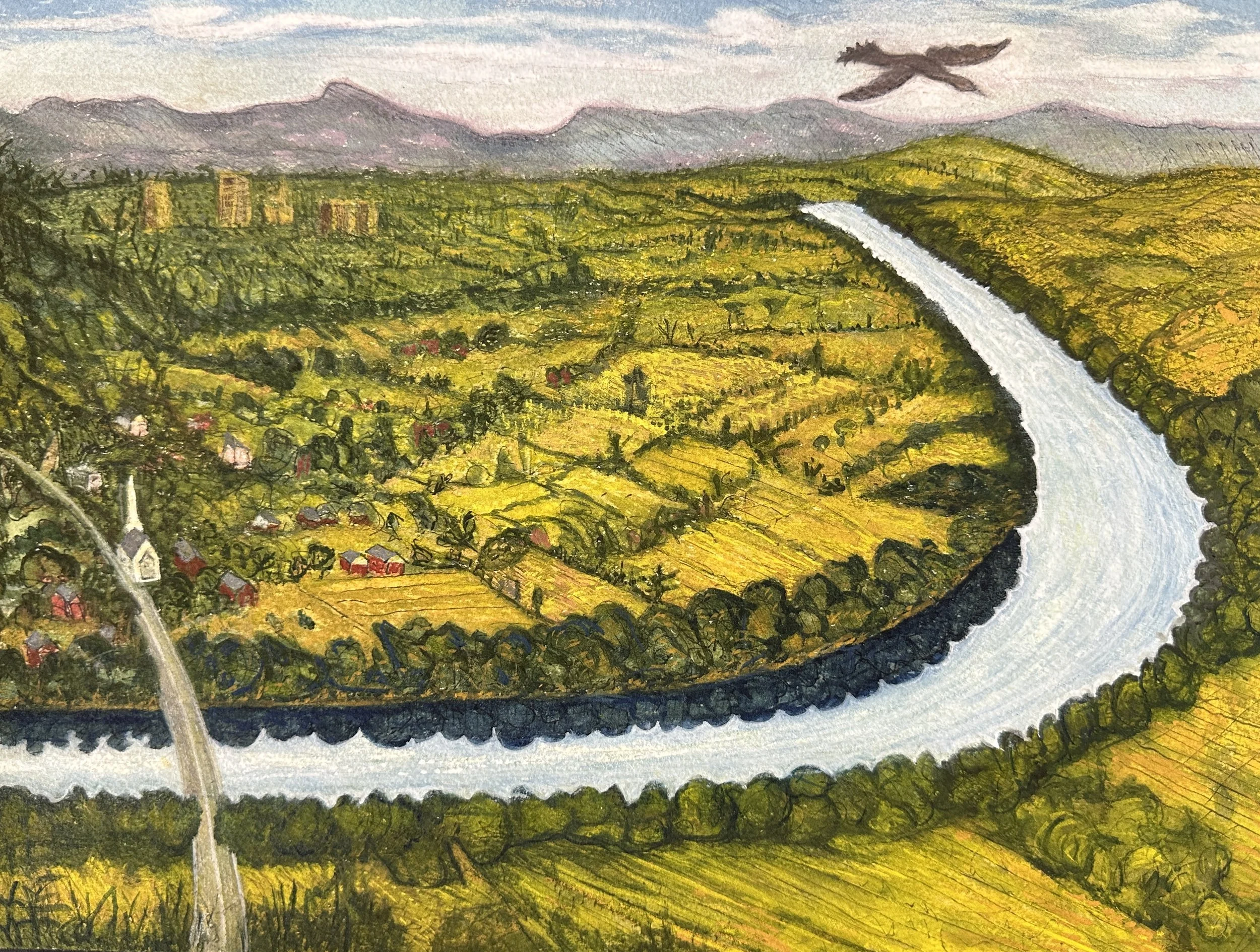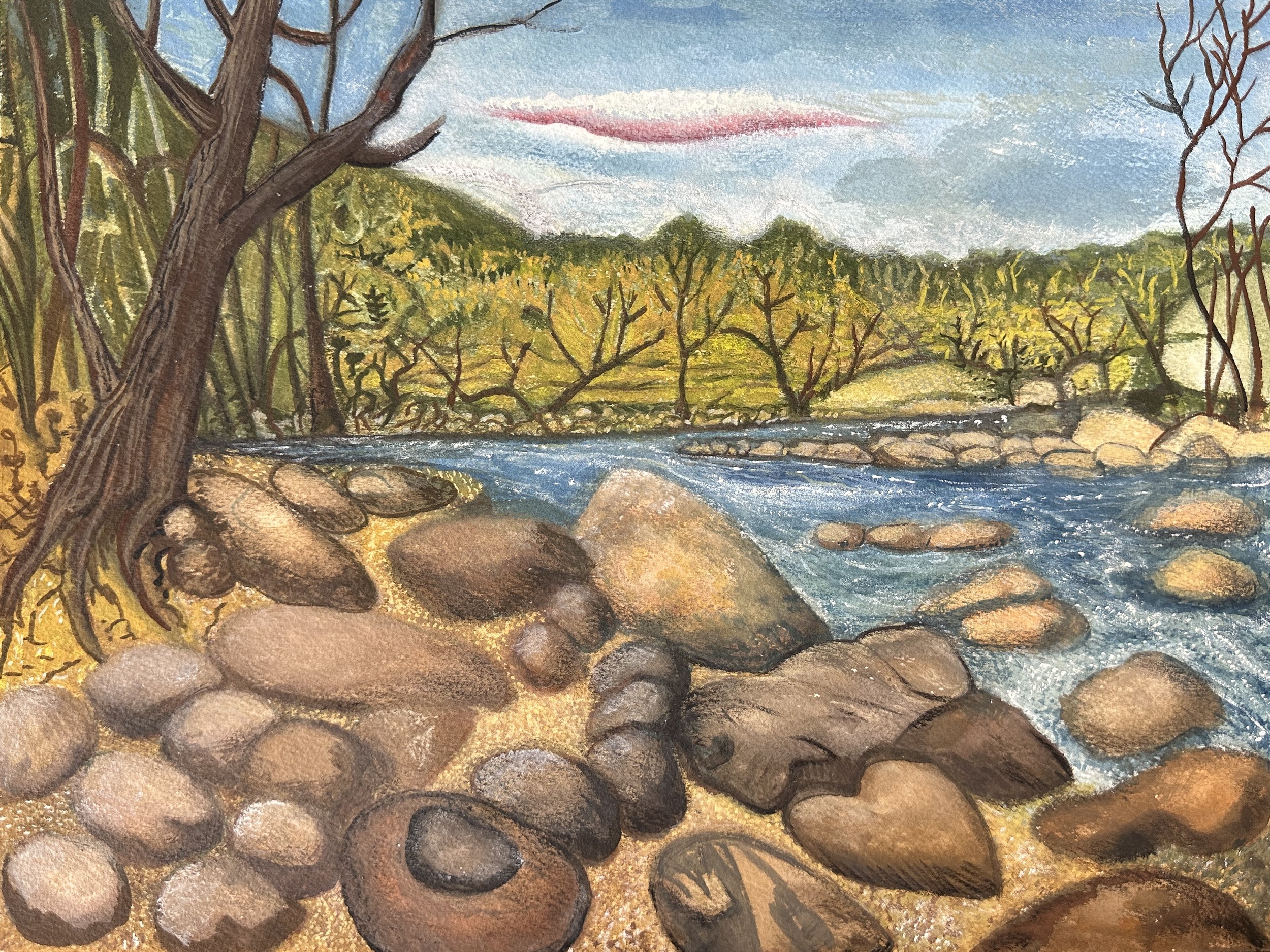 I met Peter through our mutual friend and his most devoted collector, Ellen. AN INSTANT FRIENDSHIP WAS STRUCK. SOON AFTER MEETING PETER, I WOULD MEET HIS TWIN BROTHER LARRY. ANOTHER INSTANT FRIENDSHIP OCCURRED. AT THE TIME, I WAS HEAVY WITH AN INVENTORY OF FINE WOOL BLANKETS, MOHAIR SCARVES, AND CASHMERE SWEATERS. PETER AND I WERE QUICKLY OFF TO BARTERING IMAGINATION FOR DURABLE GOODS. IN OUR FIRST TRADE, I ENDED UP WITH THE QUINTESSENTIAL SALMON FALLS GOUACHE PAINTING. PETER RECEIVED A VINTAGE RED WOOL BLANKET AND SCOTTISH MOHAIR scarf.